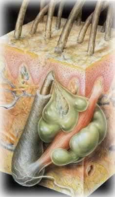 Para se entender como se dá à formação da acne e da espinha, necessário se faz, lembrarmos da constituição da nossa pele. Ela se divide em camadas, a epiderme e a derme. A derme possui pequenos “alvéolos” denominadas de glândulas, são as glândulas sebáceas. Estas produzem uma secreção que é uma mistura complexa de lipídios, e é controlada por hormônios sexuais. Na puberdade a secreção sebácea é aumentada, devido à acelerada produção desses hormônios. Por isso este problema é mais característico nos adolescentes.